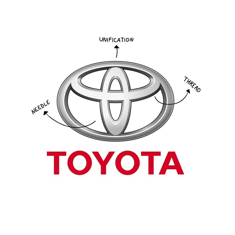 Toyota’s current logo represents an image of the eye of a needle with a thread passed through it, in line with the past history of the company which used to produce weaving machines. The logo is somewhat of a stylized “T” within a ring, form an overlapping of three eclipses/rings. The three eclipses symbolizing three hearts represents the unification of the hearts of customers and the company’s products.