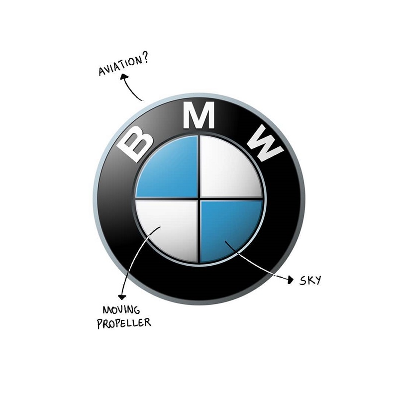 BMW’s logo colours (blue and white) is in fact simply derived from the Bavarian flag, the city where BMW originated. The logo symbolizes the blades of a spinning propeller, in line with the aviation history in 1920s.